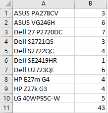 In this case, you can easily see you are in possession of 43 assorted monitors.